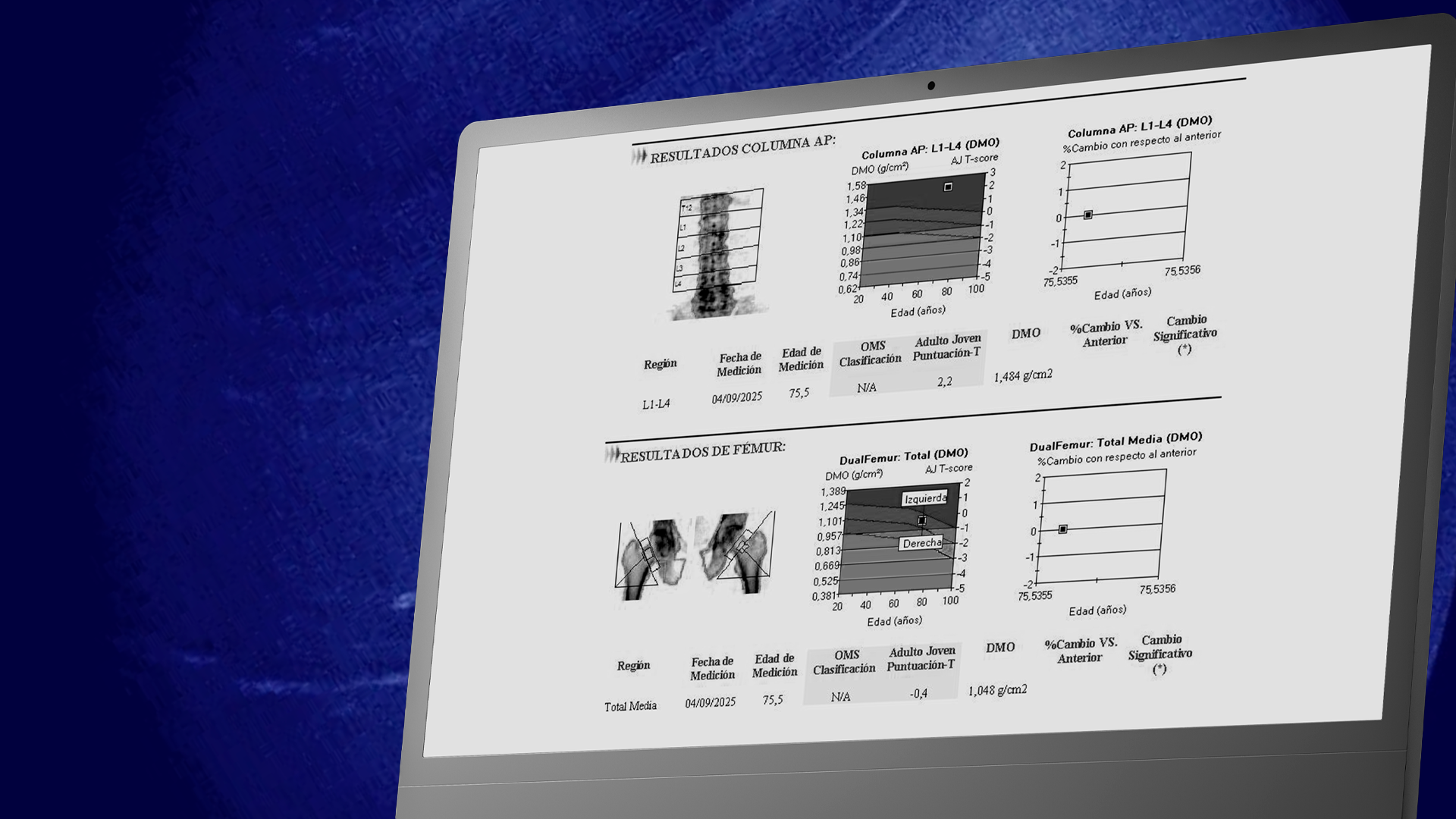 Evalúe su densidad ósea y riesgo de fractura con precisión.